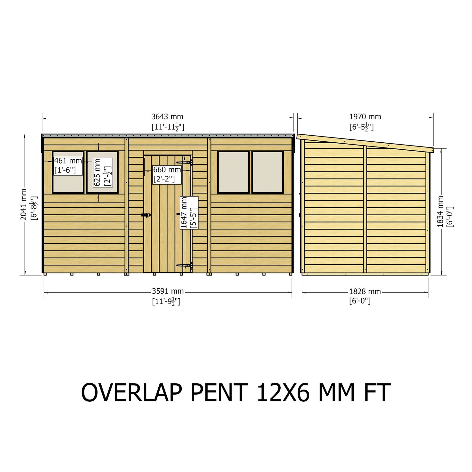 Garden Value 12 x 6 Overlap Pent Shed with windows