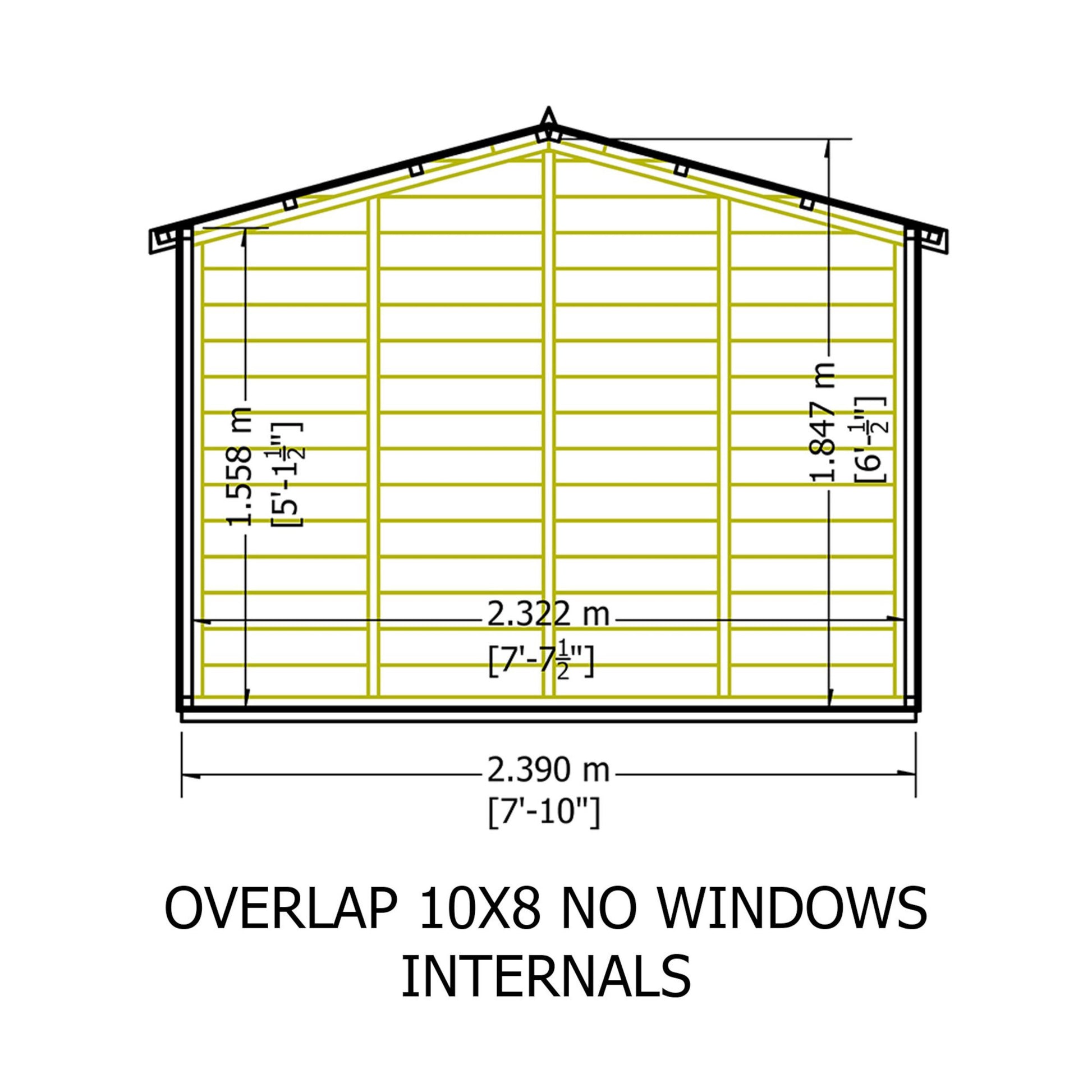 Part of our Garden Value range of overlap sheds. Double doors provide easy access to the entire space. This handy shed is manufactured from high grade, slow grown, FSC approved, European pine cladding boards over 34mm square framing with OSB roof and floor. No windows for added security.