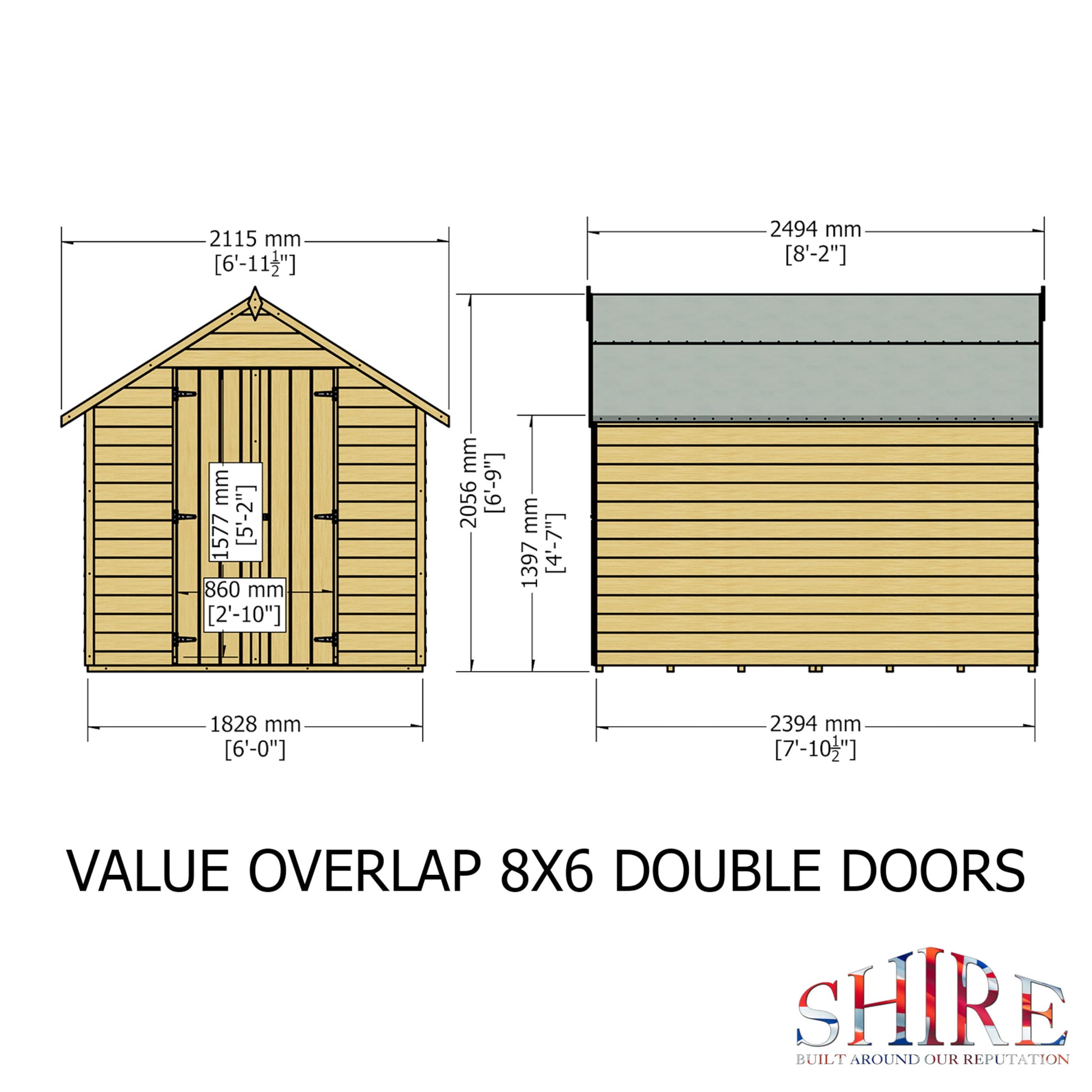 Part of our Garden Value range of overlap sheds. Double doors provide easy access to the entire space. This compact shed is manufactured from high grade, slow grown, FSC approved, European pine overlap cladding boards over 34mm square framing with OSB roof and floor.