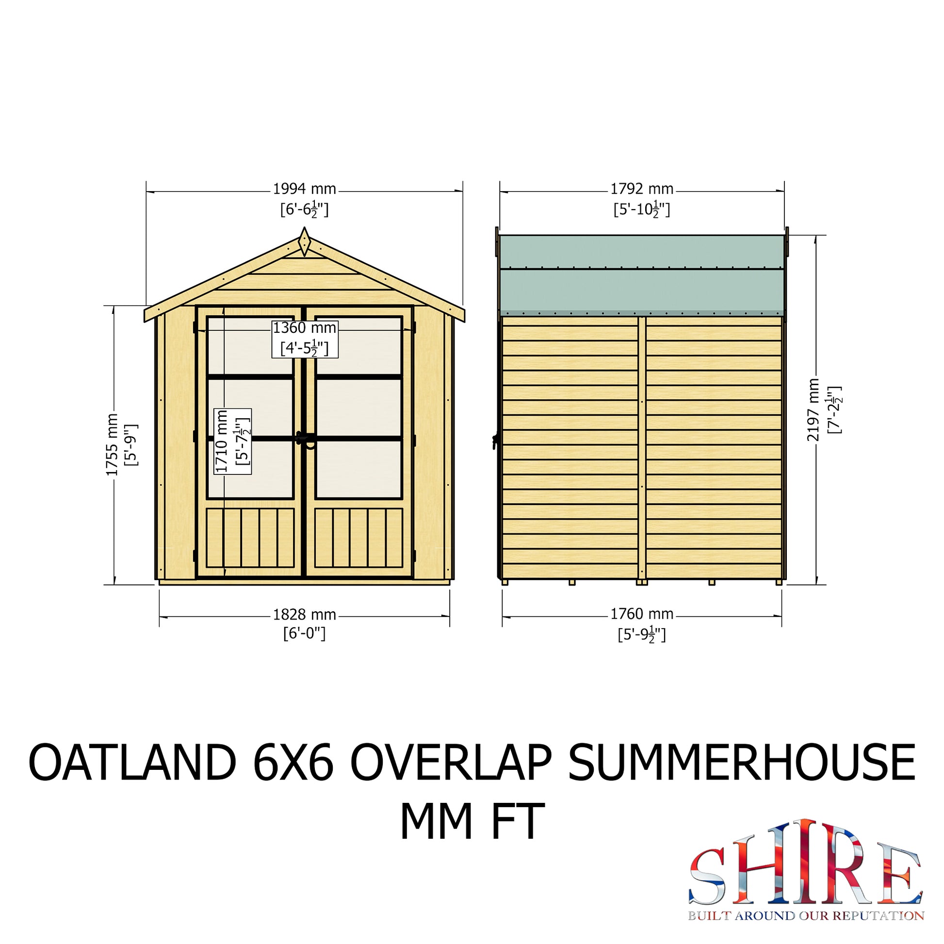The very popular and practical Oatland Summerhouse is an attractive building which can be used for many purposes and makes a handy addition to your garden or patio. Features double doors to the front giving excellent access for furniture. The Oatland is constructed from high grade overlap cladding to the walls over 34mm strong framing with OSB floor and roof.