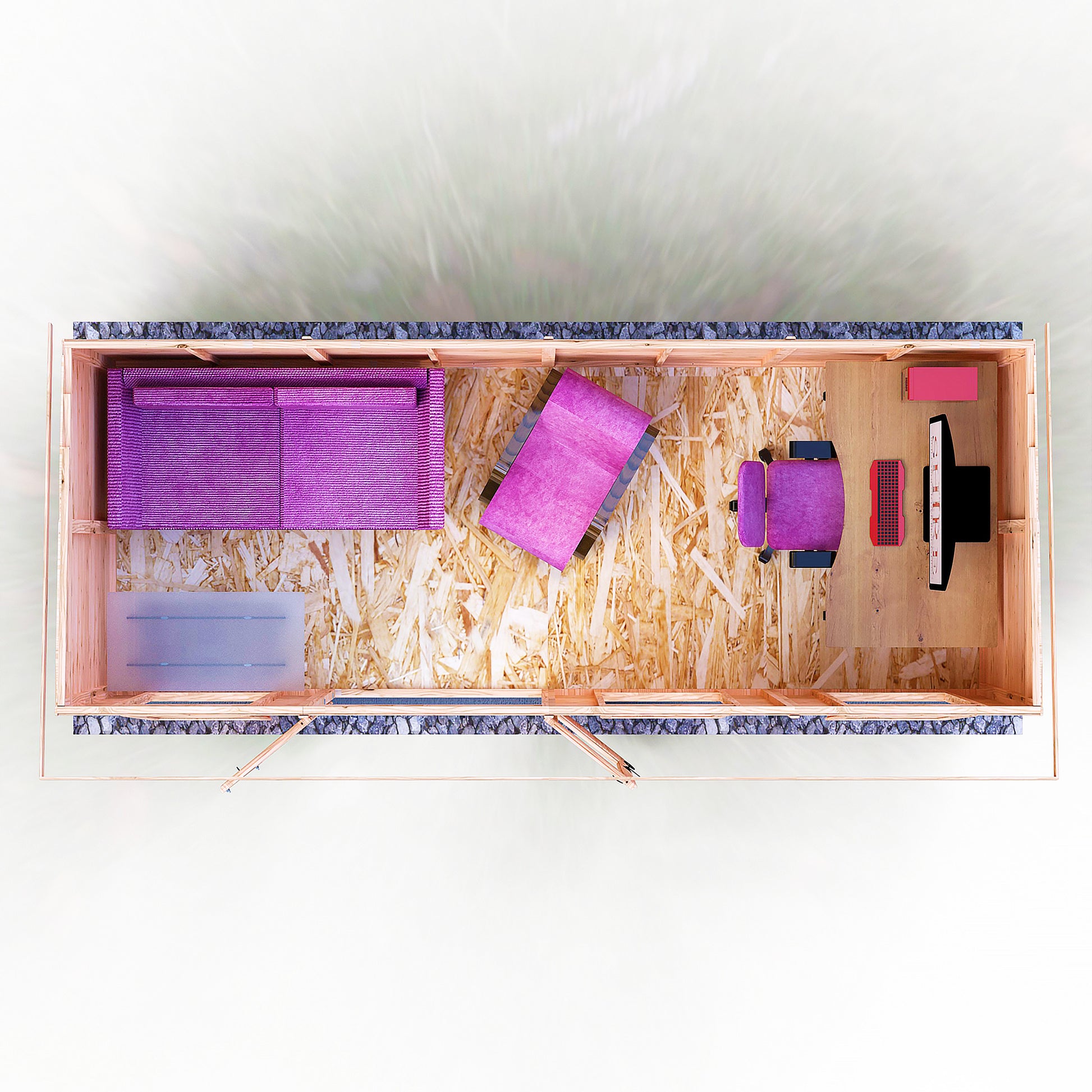The pretty Peony Summerhouse is complete with acrylic safety glazing and double doors to the front providing excellent access for furniture. This lovely pent roof garden room is constructed from high grade shiplap cladding to the walls over 34mm strong framing with OSB floor and roof. Dipped base coat preservative ready for you to top coat.